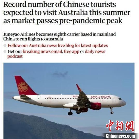 澳大利亚住宿协会首席执行官古德温(James Goodwin)表示,中国游客的回归将对澳大利亚旅游业产生整体利好。图片来源于英国《卫报》澳大利亚版网站截图。