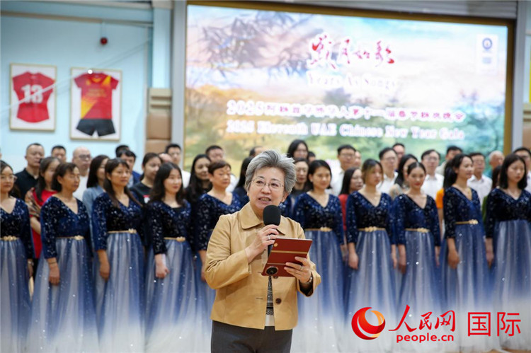 中国驻迪拜总领事欧渤芊领诵《我的祖国》。人民网 塔里克·易卜拉欣摄