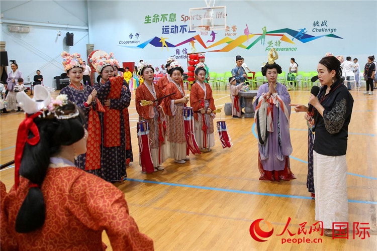 总导演李冬霞(右1)在说戏。人民网 塔里克·易卜拉欣摄