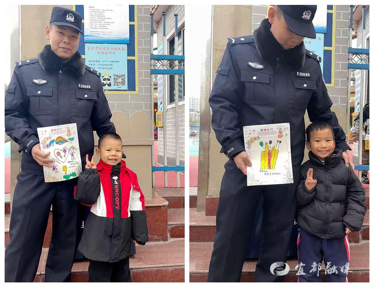 “警察叔叔,谢谢您保护我们,这是送您的礼物!”在老师的鼓励下,两名孩子鼓起勇气,递上了“独家定制”的感谢贺卡。