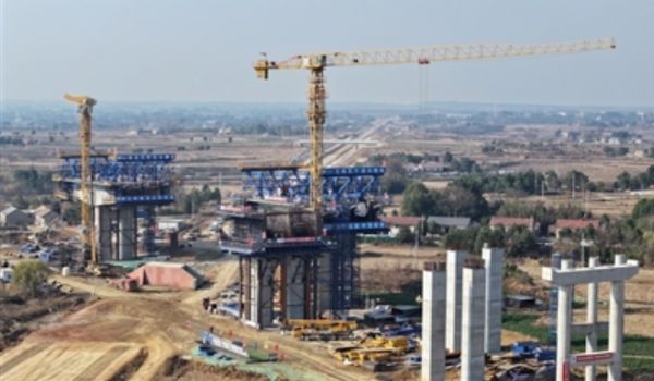 昨日,武荆宜高速汉江特大桥、疏港铁路特大桥、左冢村特大桥、五里铺南互通、五里铺互通施工现场一派繁忙景象,施工人员正在浇筑索塔、匝道、桥墩,架设箱梁……