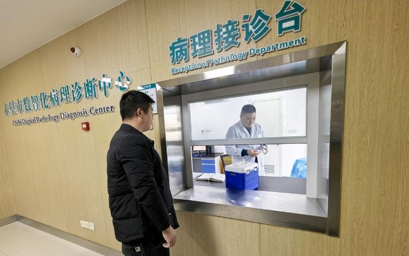 “早上刚采集的一份病理切片,请您签收。”11月21日上午11时38分,赤壁官塘驿站卫生院工作人员孔祖新拎着标本运输箱,将样本送到了湖北省赤壁市数智化病理诊断中心接诊台。