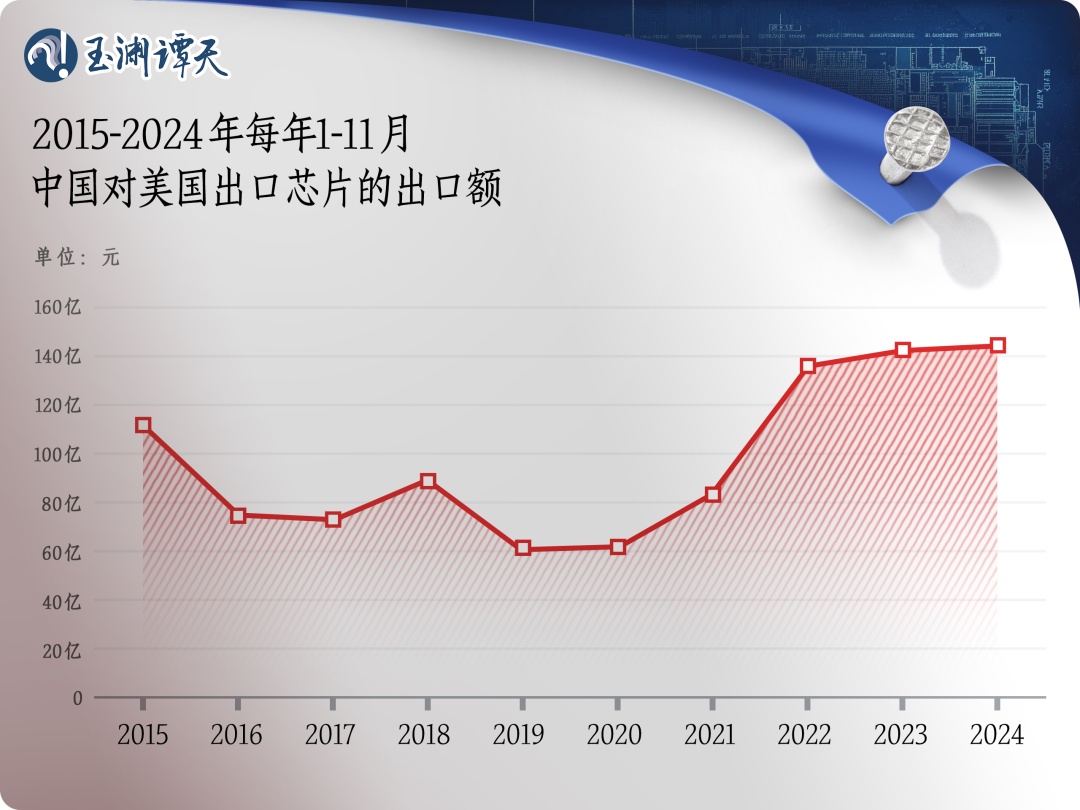 但在查询了中国对美国出口芯片的数据后,谭主发现,事情并不是这么简单。