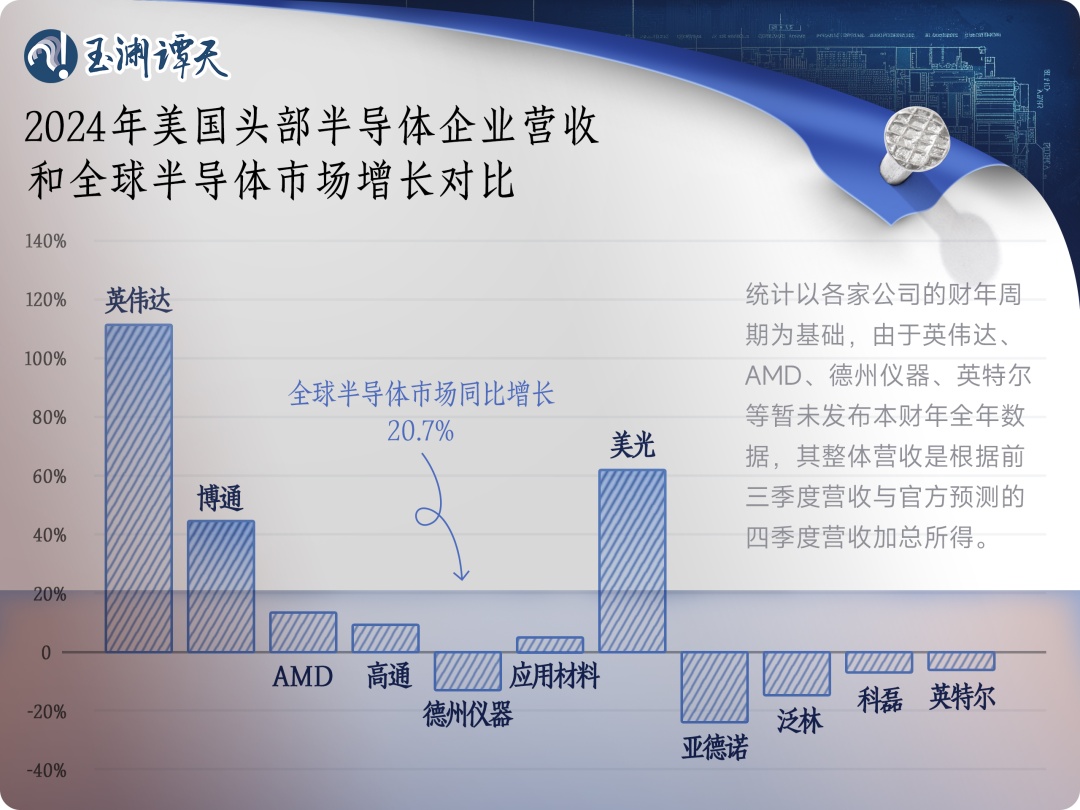 2024年,全球芯片市场都在回暖,预计同比增长20.7%。与此同时,英伟达2024年营收预计同比增长超100%,成为美国芯片市场增长最大的动力。