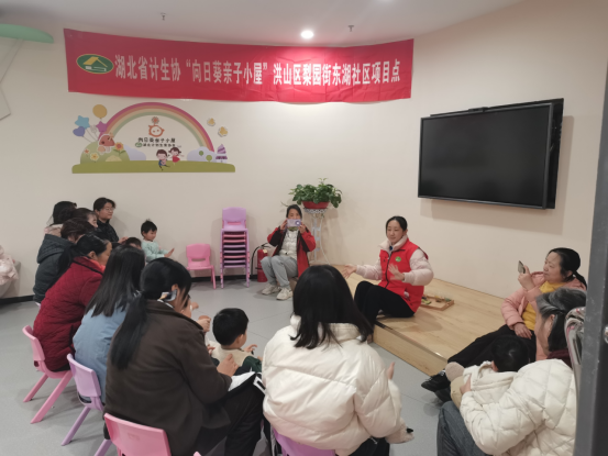 12月26日上午9点,湖北省计划生育协会洪山区梨园街东湖社区向日葵亲子小屋项目点的亲子早教课程如期开展。