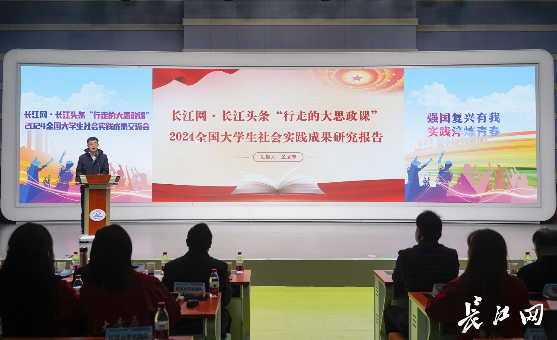 华中科技大学新闻与信息传播学院党委书记金凌志发布《长江网·长江头条“行走的大思政课”2024全国大学生社会实践成果研究报告》。 长江网记者彭年 摄