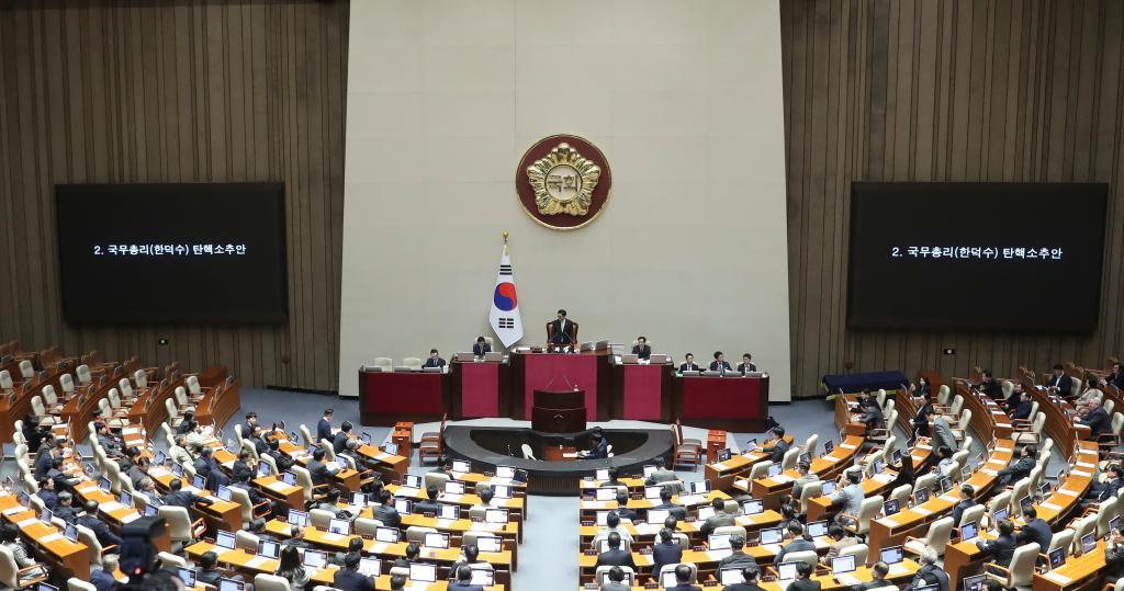 韩国最大在野党共同民主党26日向国会提请弹劾韩德洙,国会27日就此进行表决。与弹劾总统需获国会300名议员中三分之二赞成不同,弹劾总理仅需过半数即151名议员赞成即可通过。而在野党阵营在国会拥有192个议席,执政党只有108个议席。