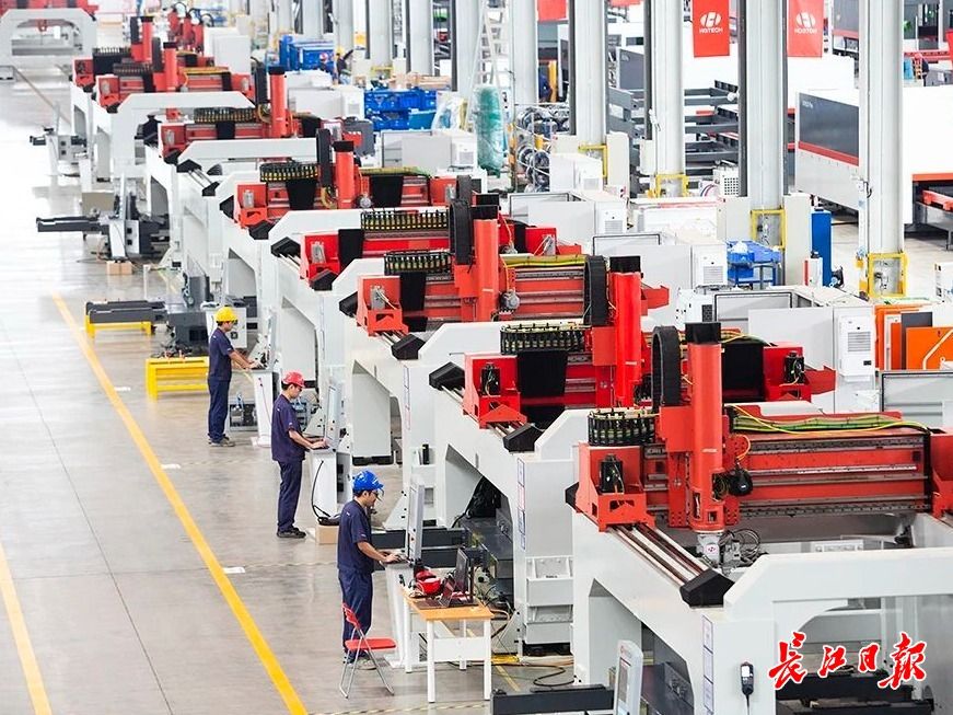 华工科技国内首条三维五轴激光切割装备流线化智造生产线。长江日报资料图