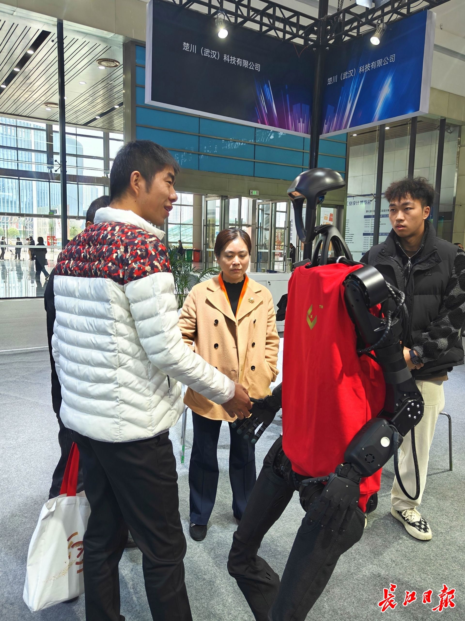 第七届中国国际工业设计博览会,观众与人形机器人互动。李昕宇 摄