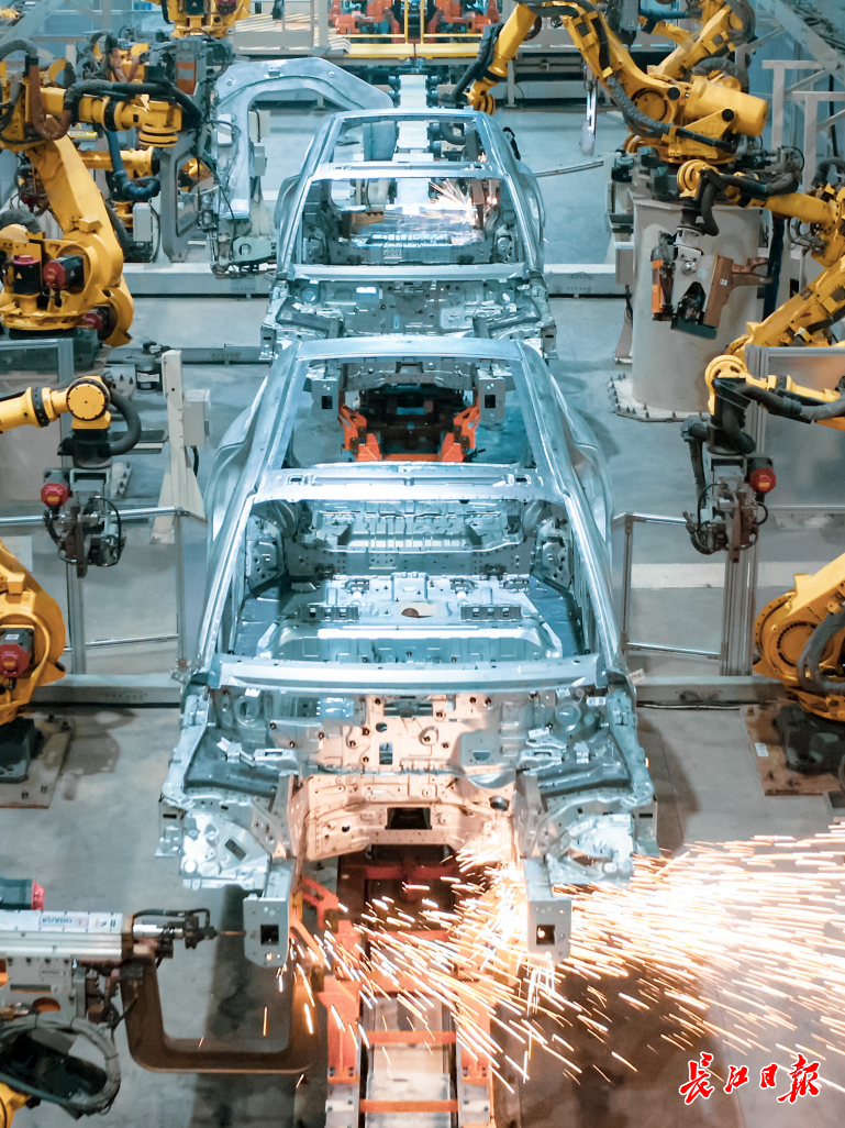 1月8日,离武汉两会会场25公里处的东风岚图工厂,一辆辆新能源汽车在智能流水线上鱼贯而出,每118秒就有一辆汽车在这里下线,中国新能源汽车年度第1000万辆两个月前在这里诞生。