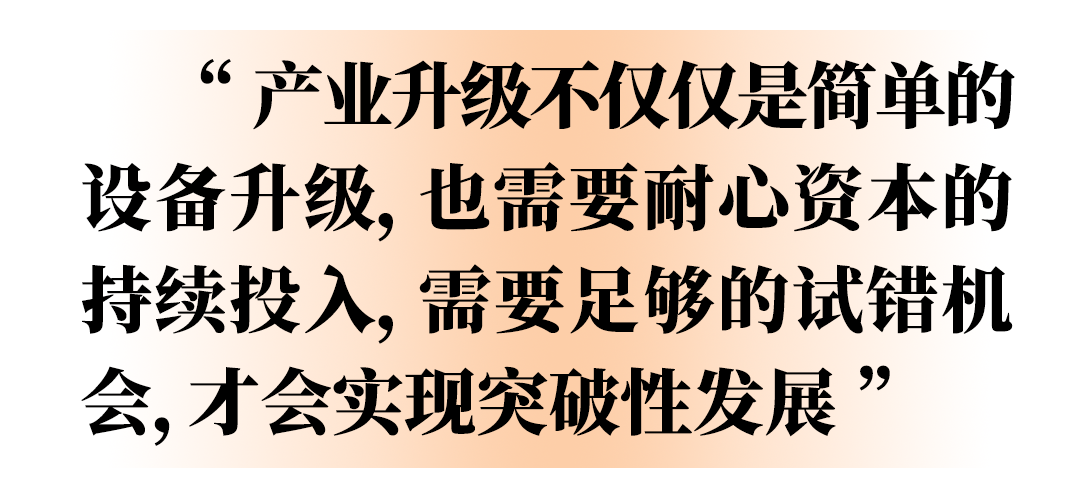 郑敏认为,产业升级不仅仅是简单的设备升级,也需要耐心资本的持续投入,需要足够的试错机会,才会实现突破性发展。