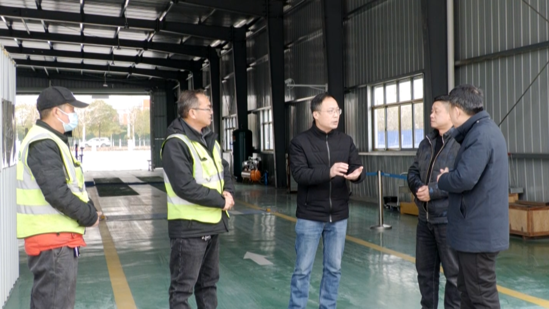 在华鑫机动车检测管理有限公司,安陆市南城街道四里社区第一任代理书记李道文将运输经营备案证明送到了企业负责人手中,让企业完成相关备案手续。