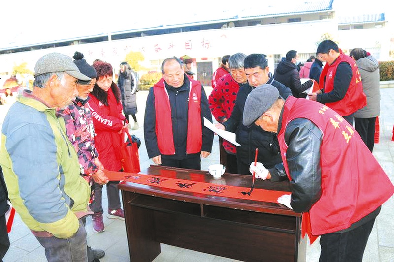 蛇年迎新春,墨香飘进门。元月六日,随县万和镇开展“迎新春送文化下乡”活动,来自随州市老年书画家协会、诗词楹联学会的书法家和学者们现场为群众写春联、送祝福。活动共送出春联三百余副。(随州日报通讯员黄思寒杨雨薇摄)