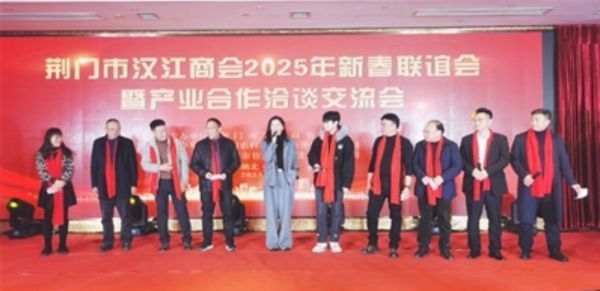 1月10日晚,荆门市汉江商会举办2025年新春联谊暨产业合作洽谈会,300多名在荆门和湖北其他市州天门商会企业家参与。