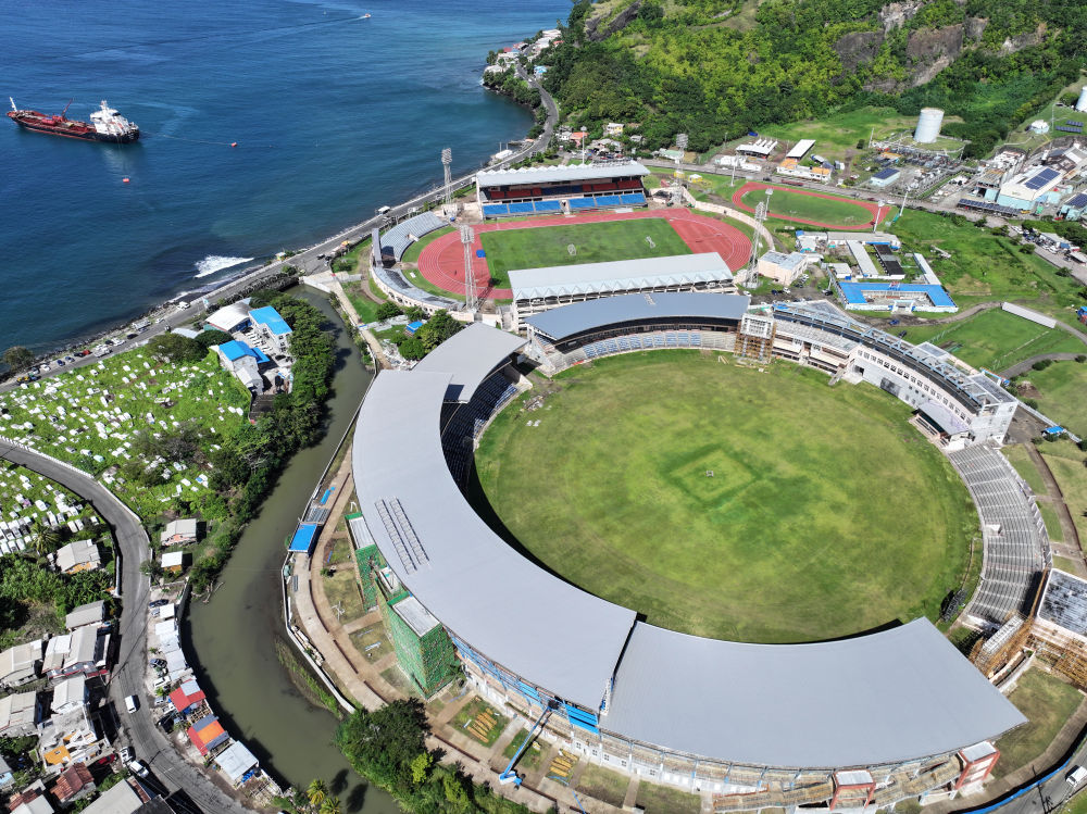 这是1月6日在格林纳达首都圣乔治拍摄的格林纳达国家板球场(无人机照片)。新华社记者赵凯摄