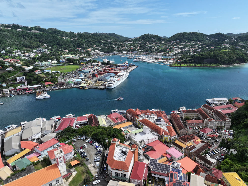 这是1月7日拍摄的格林纳达首都圣乔治风光(无人机照片)。新华社记者赵凯摄