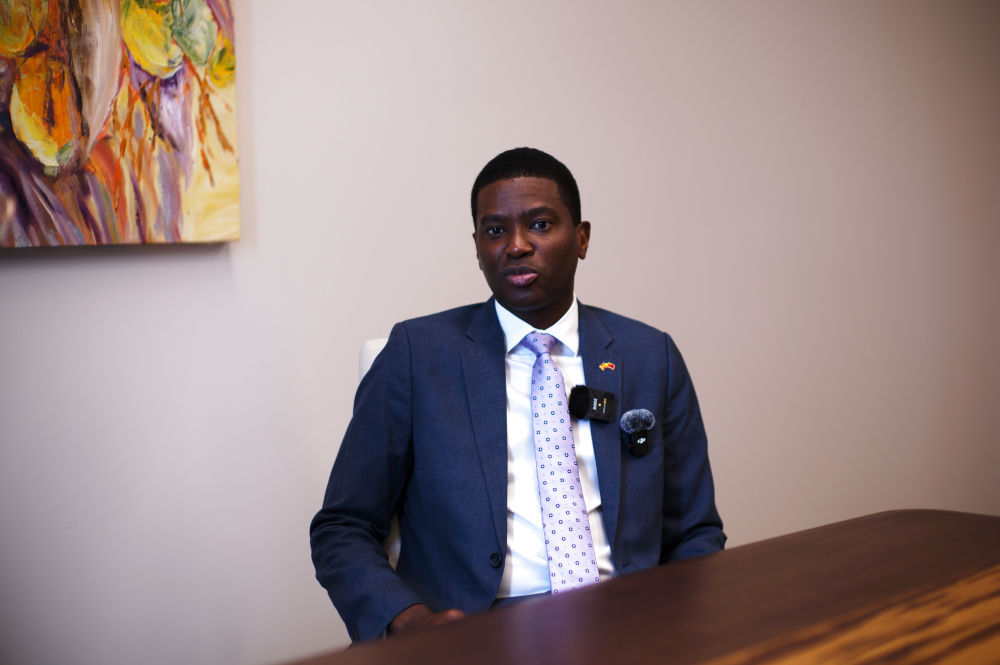 1月6日,格林纳达经济发展、规划、农业和土地、林业、海洋资源和合作社部长伦诺克斯·安德鲁斯在首都圣乔治接受新华社记者专访。新华社记者赵凯摄