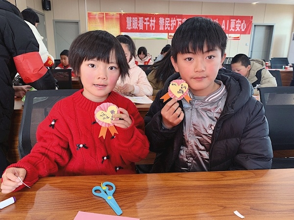 十里社区,孩子们展示“寒假学堂”的手工作品。