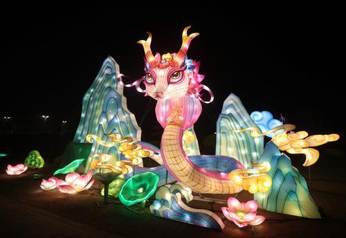 灯会共分为四大主题展区,包括“楚韵悠长·璀璨荆楚”,展现中国古代文化的博大精深;“童梦乐园·浩瀚星空”,打造一个奇幻有趣的互动空间;“梦幻山海·神话奇缘”,带领游客领略山海幻境的神秘;“灵蛇献瑞·欢度春节”,凸显中国春节文化的内涵与魅力。(记者 三毛 摄)