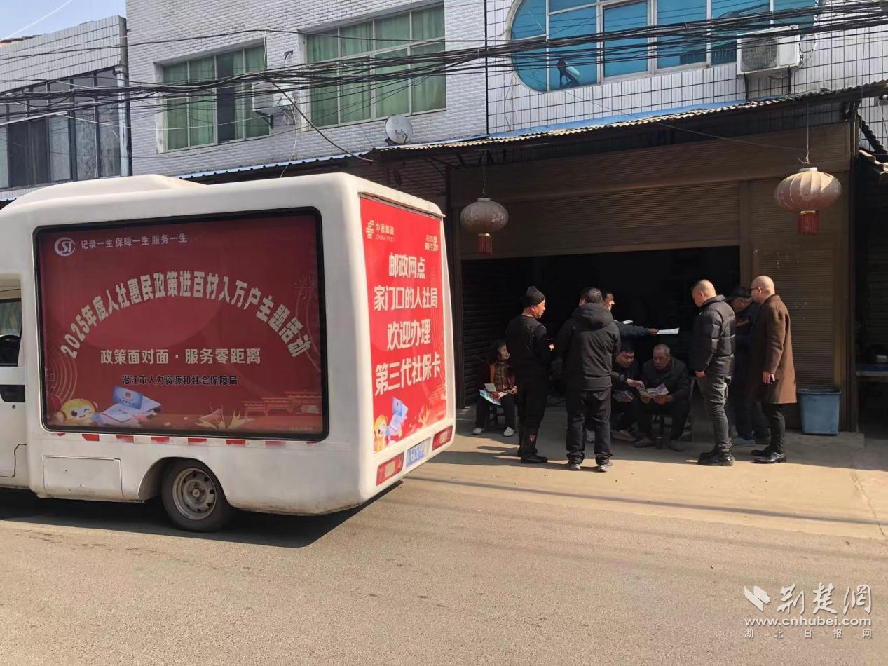 荆楚网(湖北日报网)讯(通讯员涂明华、陈杰)1月21日,潜江市人社局联动竹根滩镇人民政府,在广大城乡居民春节返乡之际,以点带面,深入该镇沙街片区朱湖村开展政策宣传,极力化解适龄参保人员缴费误区、享待人员认证盲区、留守人员换卡短板,通过政策宣传、入户走访、现场制卡等手段,拉开了2025年度人社惠民政策进百村入万户活动序幕。