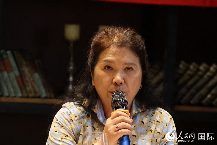 里约和统会永久名誉会长詹慧华在座谈会上致辞。人民网记者 陈海琪摄