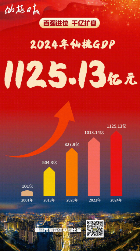 1月22日,仙桃人民收获振奋人心的新春礼物——2024年仙桃GDP突破1100亿元大关,达到1125.13亿元,实现百亿增量目标。