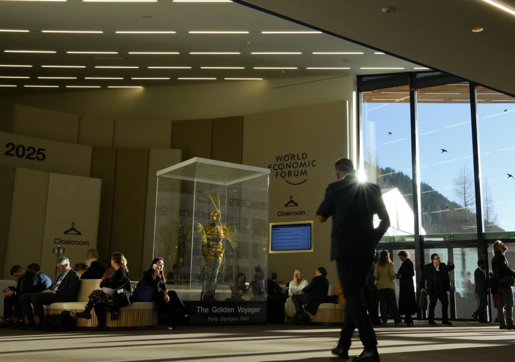 1月21日,在瑞士达沃斯,与会者参加世界经济论坛2025年年会。新华社记者连漪摄