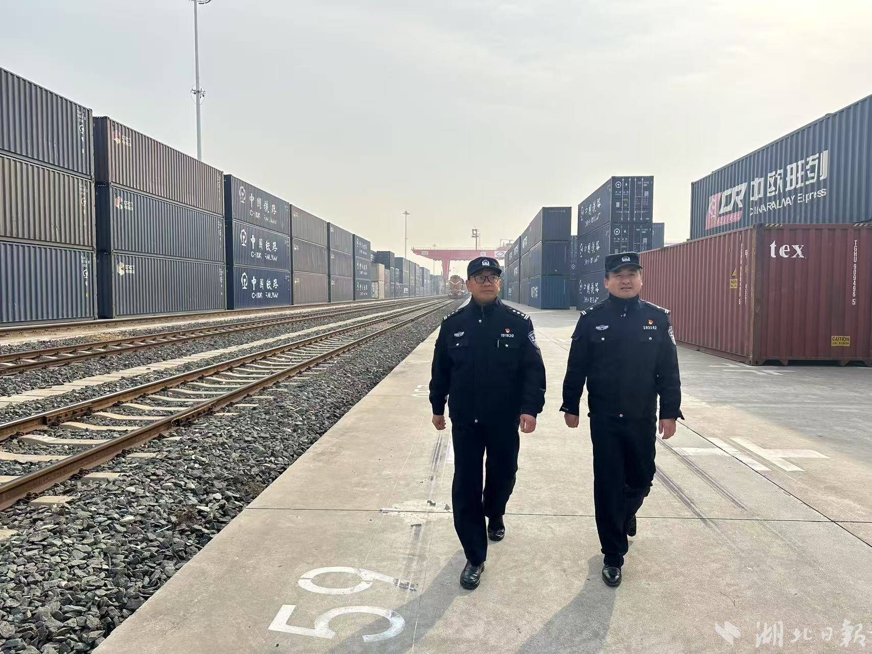 湖北日报讯(通讯员袁瑾旖)2025年春运期间,中欧班列的运输任务仍旧繁忙。武汉铁路公安局汉西站派出所民警们24小时轮班坚守在岗位上,他们强化线路安全隐患排查,加强站区巡查,开展法制安全宣传,提升打击违法犯罪的整治力度,有力保障了中欧班列安全稳定畅通运行。