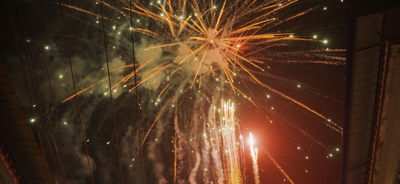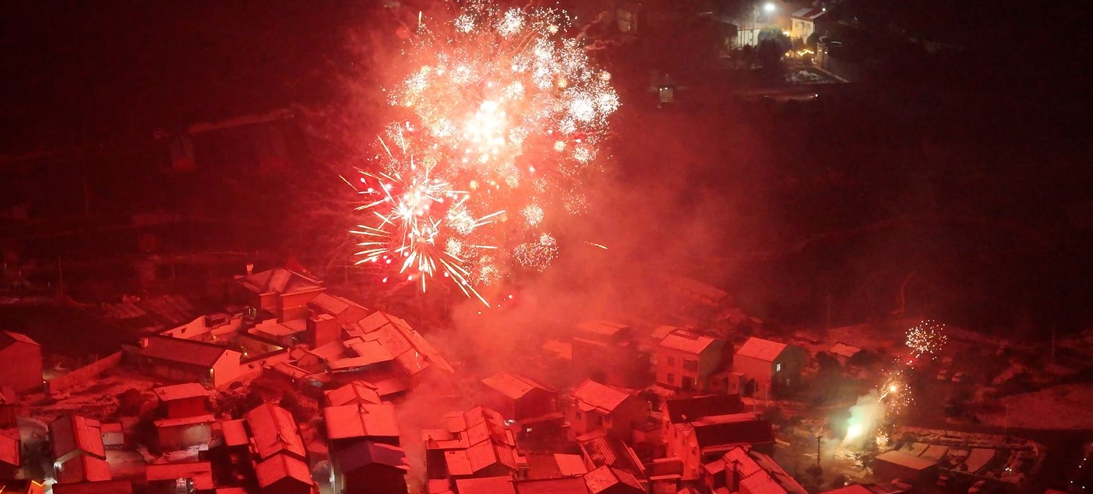 屋外,鞭炮声声