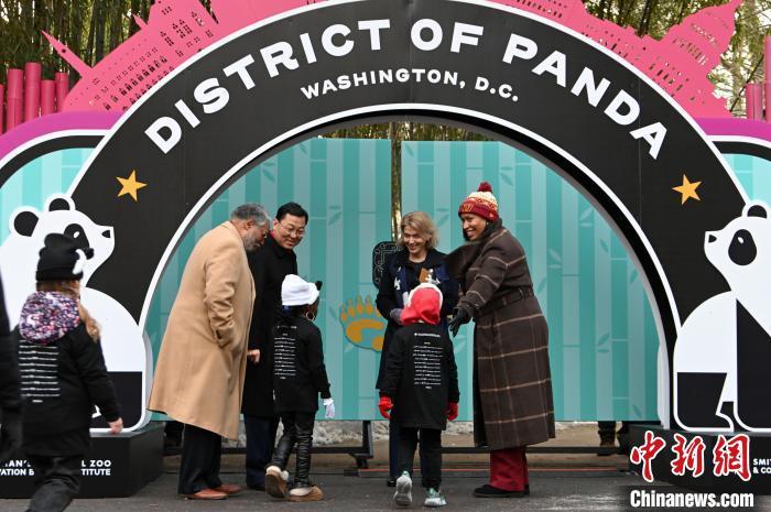 当地时间1月24日,旅美大熊猫“宝力”“青宝”正式亮相华盛顿国家动物园,与公众见面。图为中国驻美大使谢锋等出席活动。 中新社记者 陈孟统 摄
