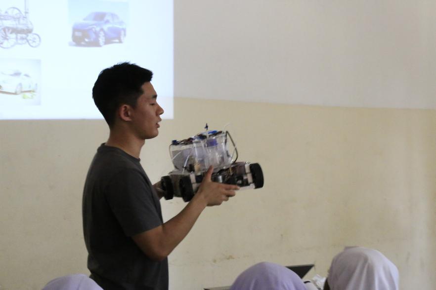支教课堂上的Chem-E-Car小车展示。图片由清华大学探微书院“桑华筑梦”支队提供