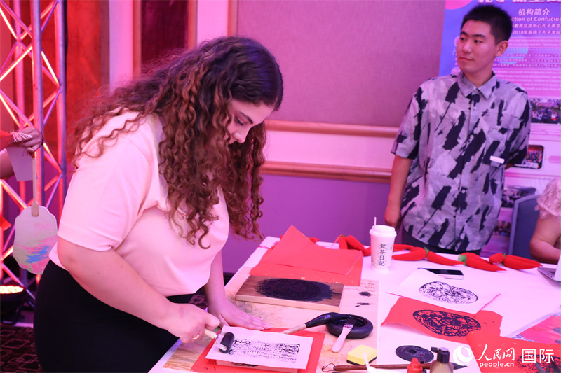 与会嘉宾体验中国书法。人民网记者 戴楷然摄