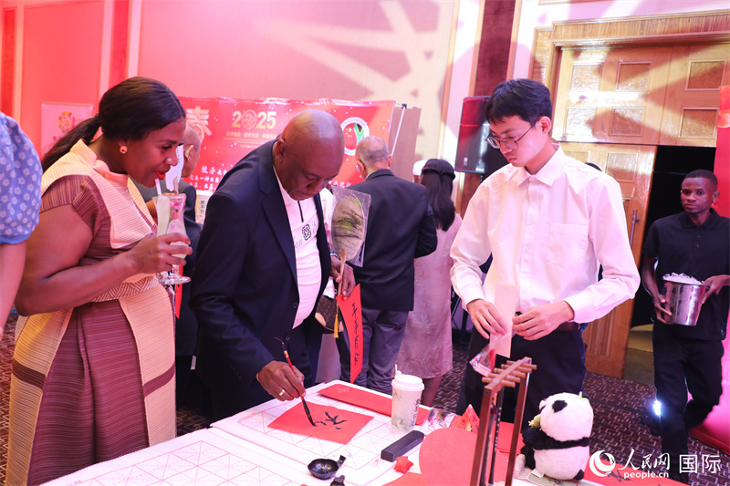 招待会现场设立中国书法、茶艺、民族服饰、非遗作品等文化展台以及水饺、点心、冰糖葫芦等中式美食品鉴,中南双方共同奉上武术、歌舞等文艺演出。与会嘉宾体验中华文化,品尝特色美食,现场气氛喜庆热烈。