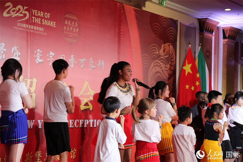 中南儿童在招待会现场共同演唱歌曲。人民网记者 戴楷然摄