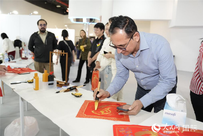 看电影《流浪地球2》,玩电游《黑神话:悟空》,体验书法剪纸,参与投壶蹴鞠……活动现场,中外友人一同写春联、包饺子、过大年,将首个“非遗版”春节的浓浓暖意传递到每位在阿中资企业员工的心中。
