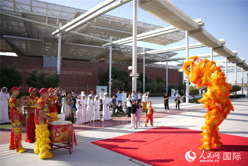 喜庆的舞狮表演吸引众多阿联酋当地民众欣赏。人民网 塔里克·易卜拉欣摄