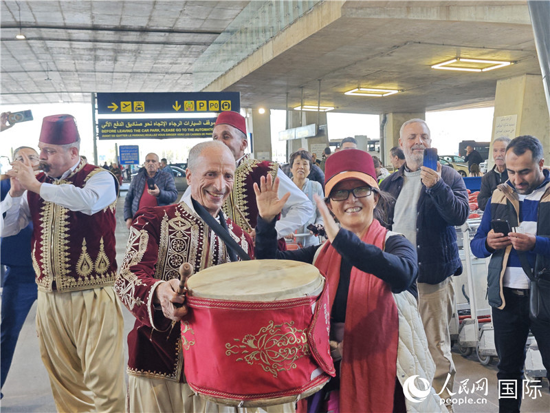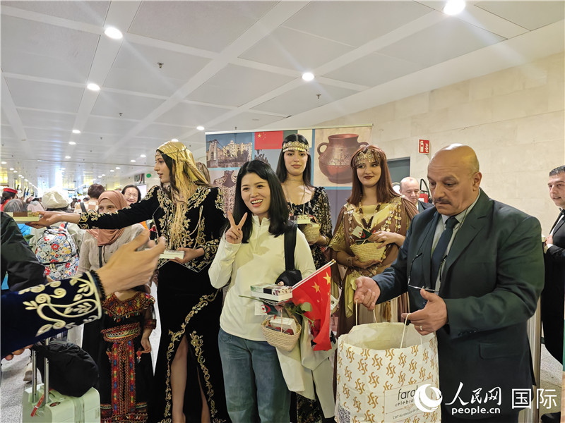 阿尔及利亚民众着传统服饰迎接中国游客来阿过大年。人民网记者 郝瑞敏摄