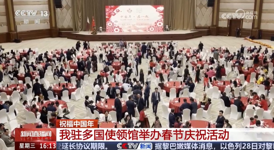 央视网消息:这几天,我驻多国使领馆举办了丰富多彩的春节文化活动,在欢乐祥和的气氛中,共庆新春佳节。