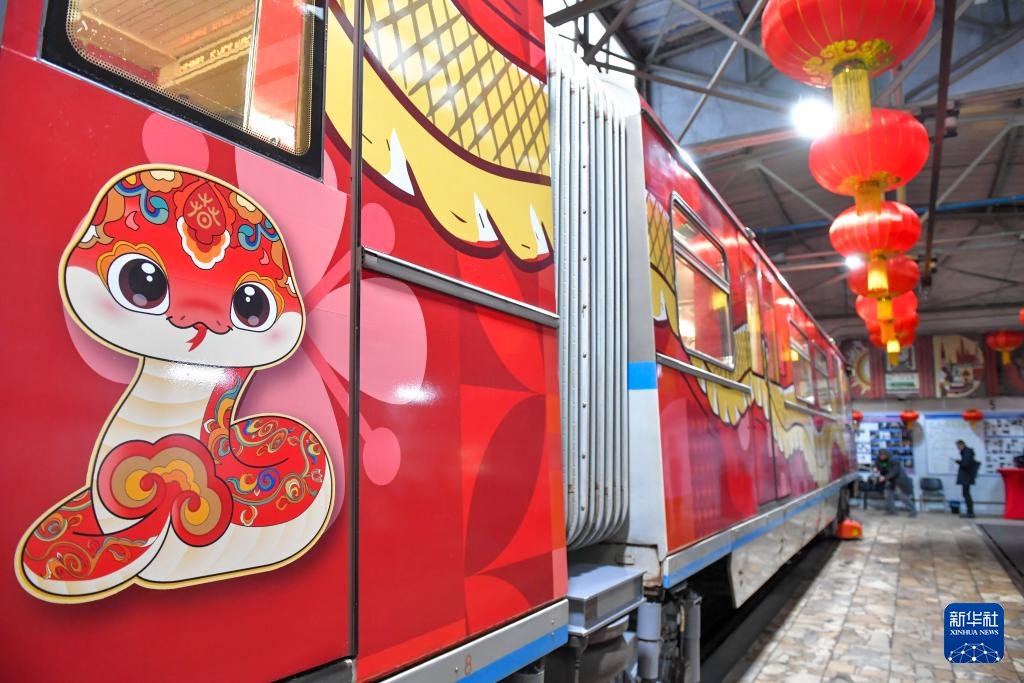 这是1月29日在俄罗斯首都莫斯科拍摄的春节主题地铁列车。新华社发(亚历山大摄)