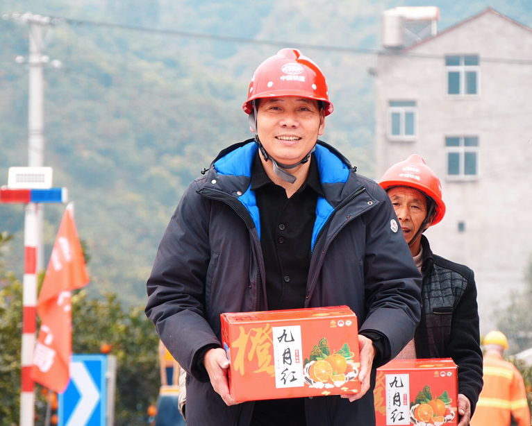 “礼轻情意重,我们自发地摘了些自家的橙子,过来慰问中铁二十局的工友们,感谢他们为我们修建的‘脐橙大道’。”郭家坝镇牛岭村村民周功卫说。