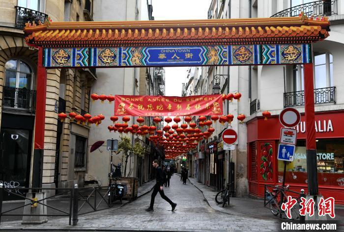图为已建成的巴黎中心区华人街临时牌楼。 李洋 摄