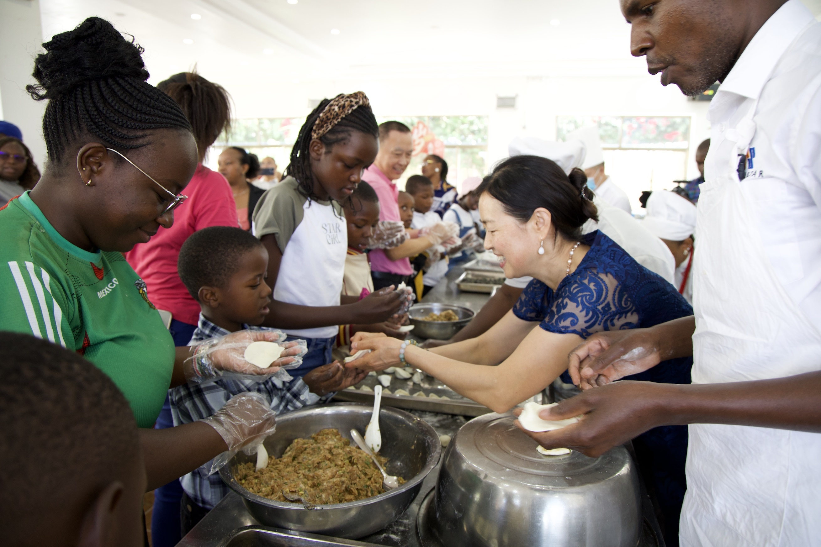 当日上午,中肯员工及家属齐聚机关食堂,现场精心布置春节文化体验展台和装饰,年味浓厚。公司顾问萨米称,邀请肯尼亚员工家属来到蒙内铁路共庆中国传统阖家团圆的重要节日——春节,是中肯文化融合的重要举措之一。孩子们在中方员工的指导下写书法、包饺子、包汤圆、剪窗花,并品尝自己亲手包的饺子和汤圆,分享新年的快乐和“甜蜜”。