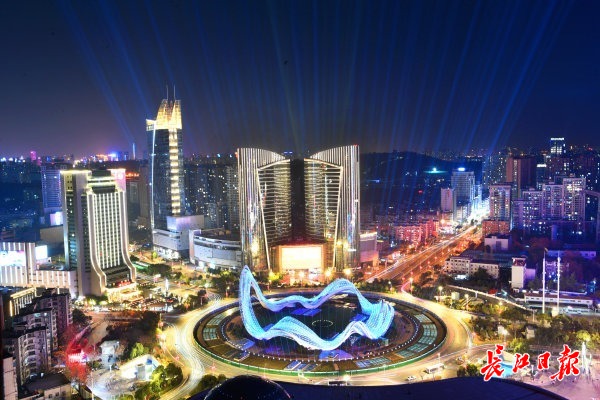 开场30秒,全球观众对武汉的“第一眼”,就是在光谷星河广场“燃”起,直冲云霄、变幻万千的那束光。