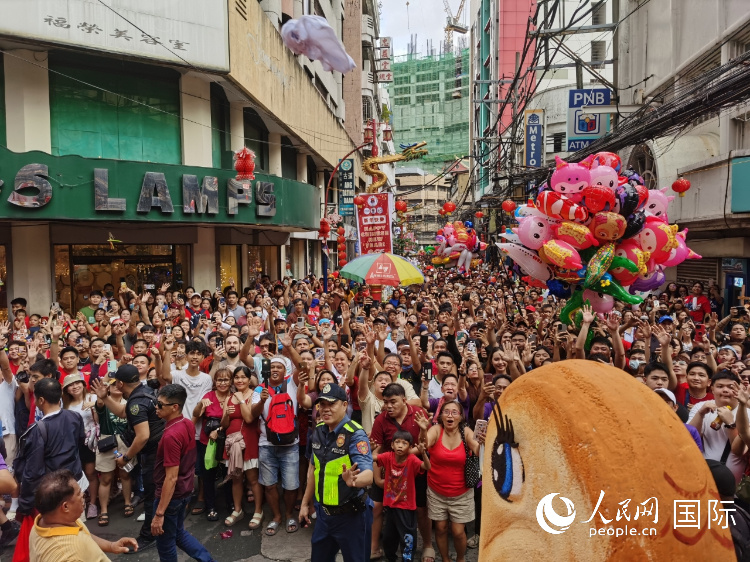 活动当天,马尼拉中国城到处张灯结彩,人头攒动。巡游队伍由四十多辆精心装扮、五彩缤纷的花车组成,浩浩荡荡,绵延百余米。百万民众参与巡游活动,人群簇拥在车队周围,一路从马尼拉市邮政局出发,经过琼斯桥、中菲友谊门、岷伦洛教堂、王彬街等地,最终抵达美加广场。黄溪连大使夫妇及华社领导在花车上向民众挥手致意,送上新春祝福,并派发新年红包、中菲友谊衫及糖果、年糕等节庆食品。沿途民众群情沸腾,欢呼雀跃,争相用中文互送祝福,并与花车合影留念。