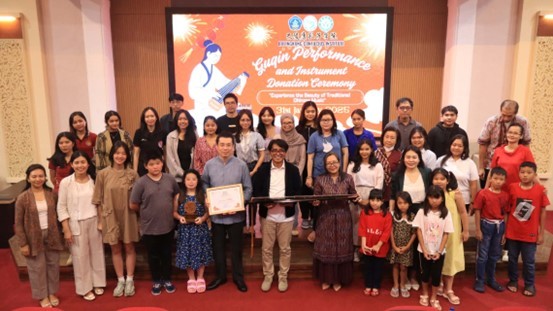 人民网雅加达2月1日电 (记者李培松)1月31日,正值中国新年大年初三,印尼巴陵康孔子学院携手古琴大师杨致俭在该院举行了“古琴雅韵再现千年风华”新春音乐会及古琴捐赠仪式,为观众带来了一场穿越千年的音乐盛宴。中央民族乐团国家一级古琴演奏员、故宫博物院特邀古琴专家杨致俭倾情献艺,印尼伽内什师范大学副校长拉斯宾·丹斯、上海古琴文化发展基金会曹怡玲和杨自莱以及巴陵康孔子学院50余名师生出席此次活动。