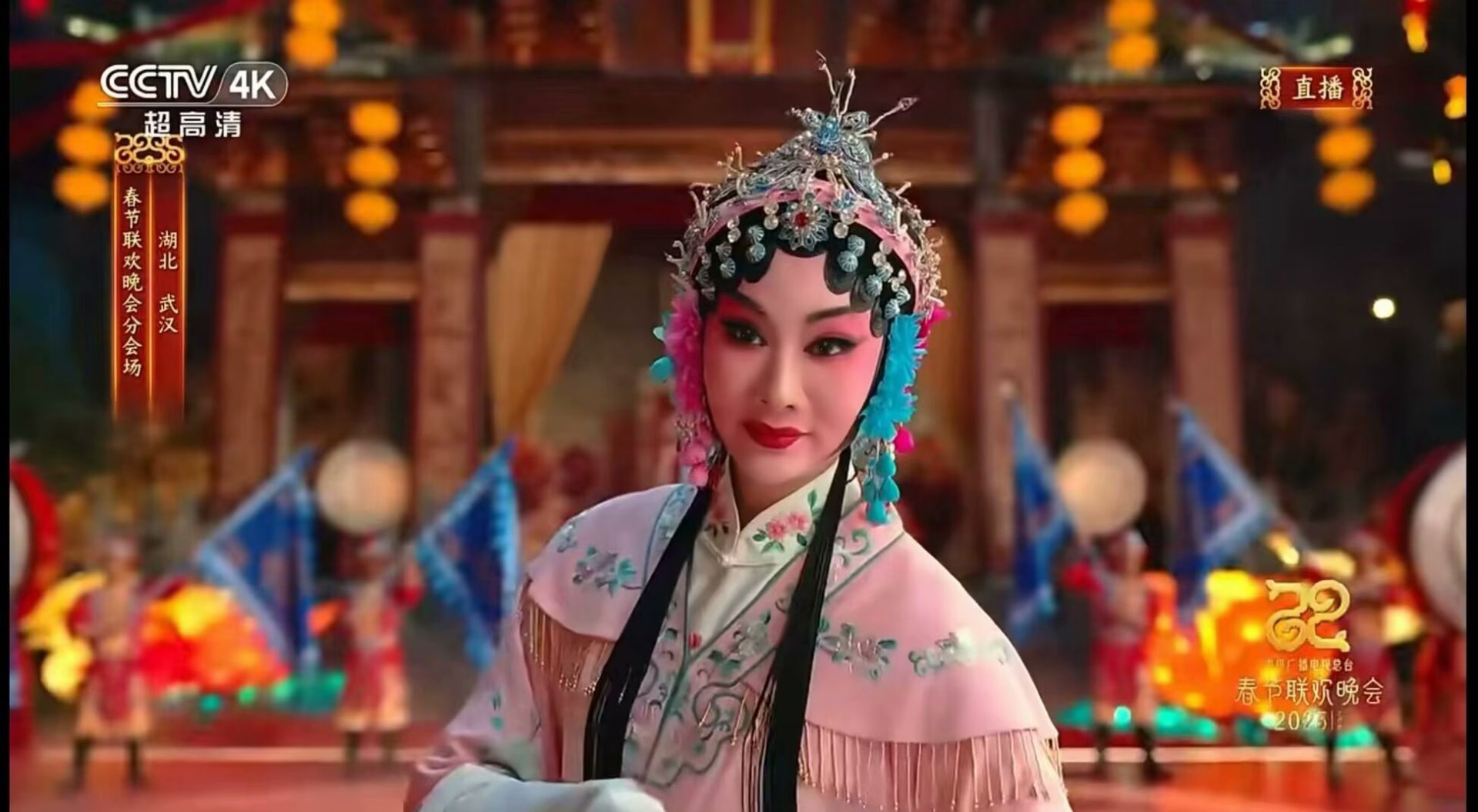 在春晚武汉分会场的大戏台上,一位戏曲演员甩起的水袖大气唯美,虽然只是一个背影演出,短短几秒仍让人印象深刻。这位甩水袖的演员是来自武汉楚剧院的青年演员邓雅倩,她告诉记者,在节目录制前两天收到通知,说春晚武汉导演看中了她展示水袖的技巧。在沟通时,导演为她编排出一段30秒的个人的长水袖展示,妆造则使用了楚剧闺门旦的装扮。
