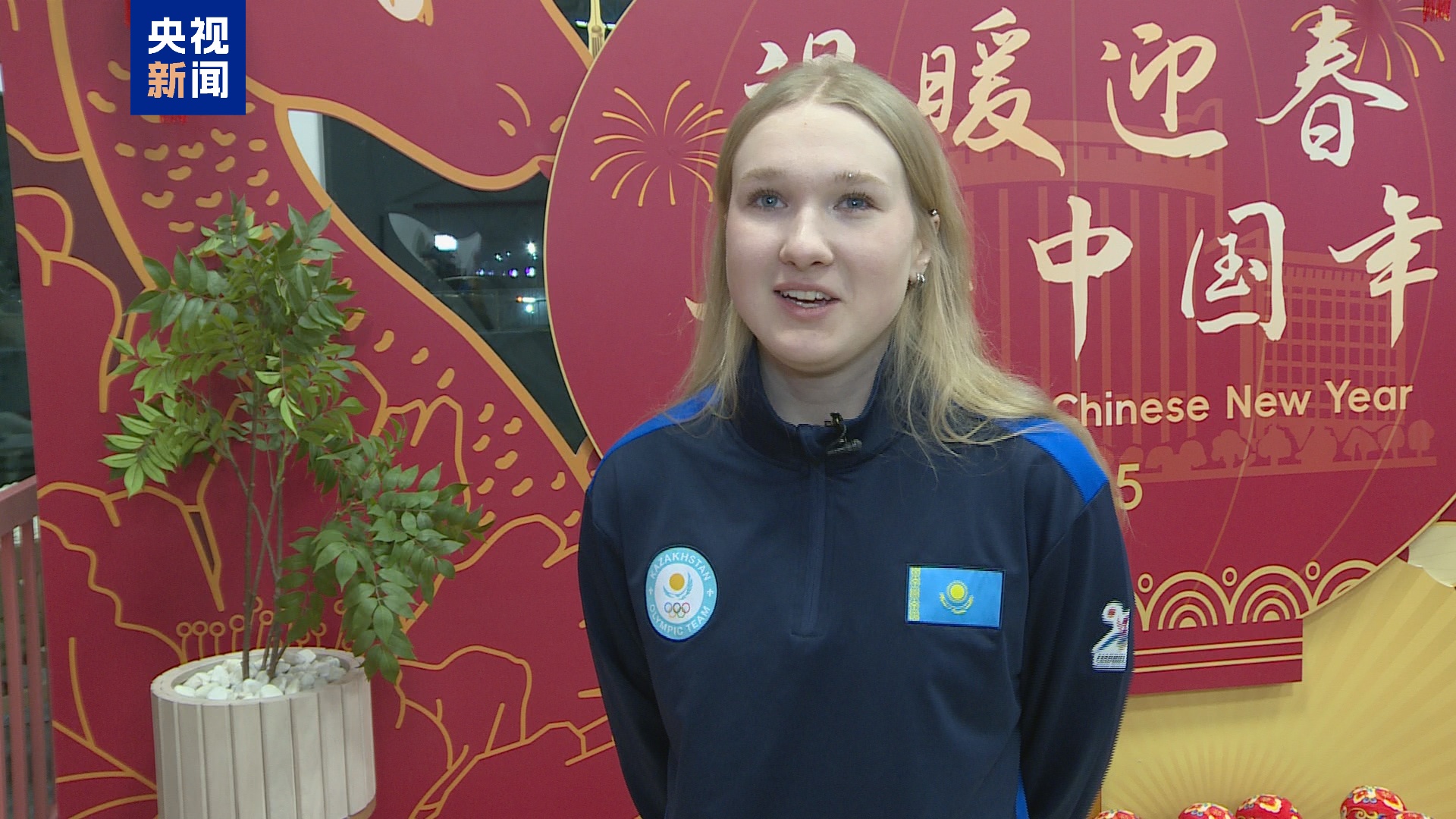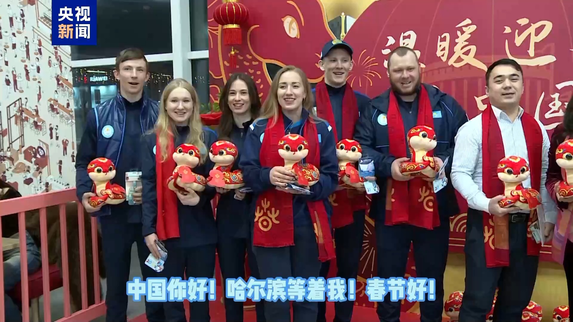 最后哈萨克斯坦高山滑雪国家队全体出征队员向中国观众献上了新春祝福。(总台记者 张誉耀)