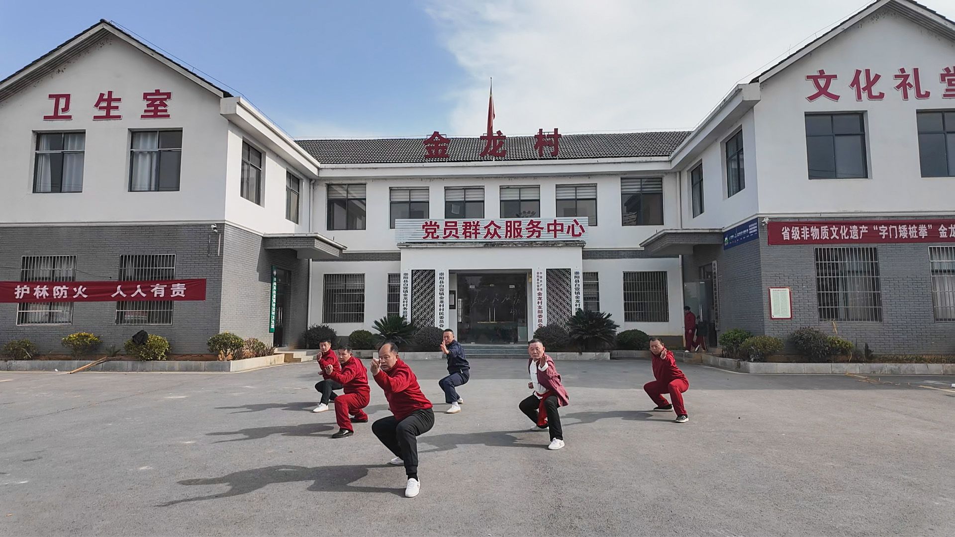 为了更好地传承字门矮桩拳,让青少年更加了解非遗、爱上非遗,金龙村把党员群众服务中心的文化礼堂“让”出来作为武术培训班,给孩子们提供学习、训练的平台。