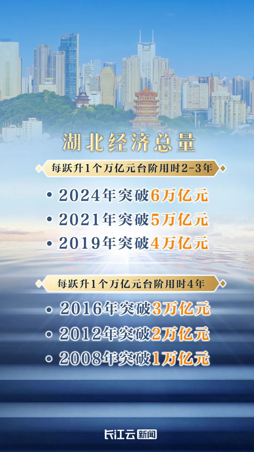 2020年疫后复苏,2021年复元打平,2022年重回赛道,2023年修复向好,2024年聚势突破,湖北的发展能级持续跃升。