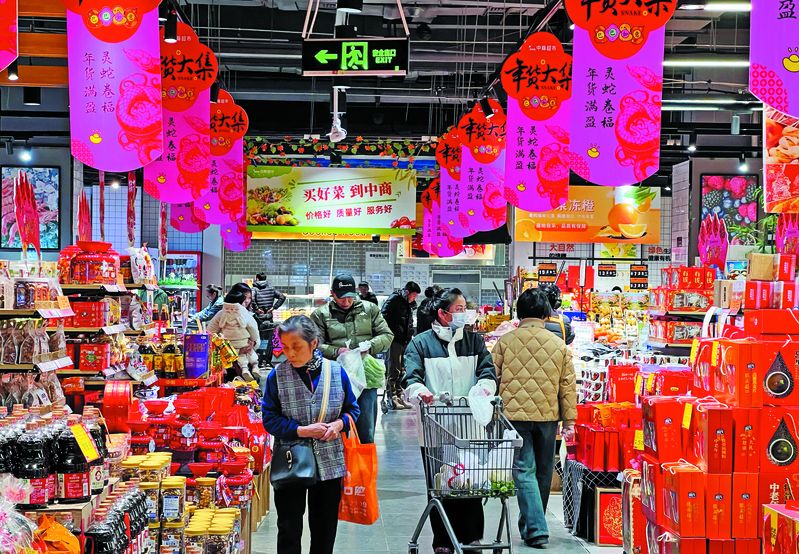 市民在团城山中商超市采购年货